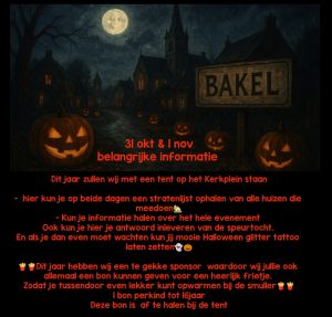 Huizen in bakel mogen zich opgeven om te versieren. Waar kinderen een snoepje mogen komen halen. Alles in Halloween stijl.